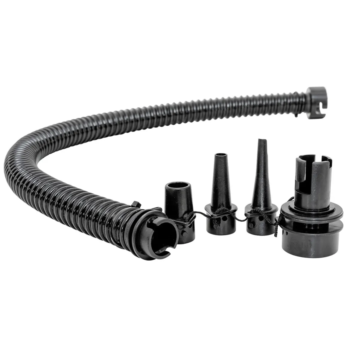 A pressure release valve is included to limit pressure to 1.4 psi, which prevents over-inflating. The accordion-style hose locks onto the pump, eliminating annoying disconnections. Four universal valve fittings fit all popular valves and lock onto the hose. You’ll love the screw-on Boston Valve adapter, an Airhead exclusive.