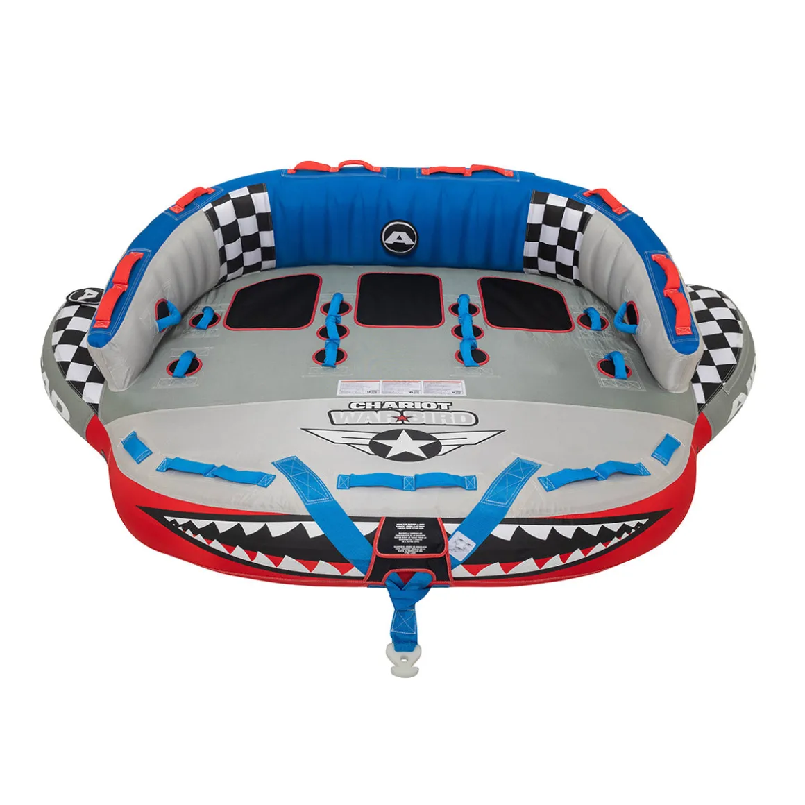 The Airhead Chariot Warbird 3 is a multi-dimensional inflatable tube made to embody the fierceness and strength of an eagle. This 3 person towable offers a striking balance between stability, comfort, and thrill.