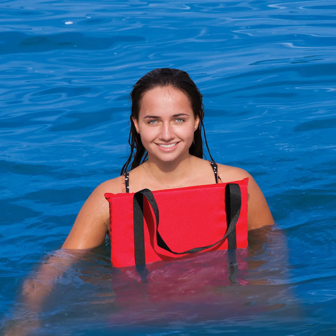 This personal water flotation device for swimming is made from soft nylon that feels comfortable against your skin. Inside, a lightweight Poly-E flotation device ensures your safety. Cove Saddle has carrying handles that make it easy to transport when you’re moving from the shore to the water.