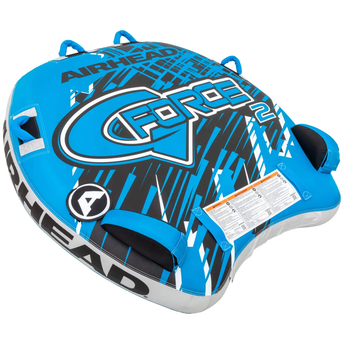 Designed to withstand time from the inside out, the Airhead G-Force towable has a tough 30 gauge virgin PVC bladder and is equipped with a heavy-duty Kwik-Connect tow points for easy and secure hook-ups. And with an 840 denier double-stitched nylon cover, the G-Force 2 person towable tube offers the ultimate towable tube experience.