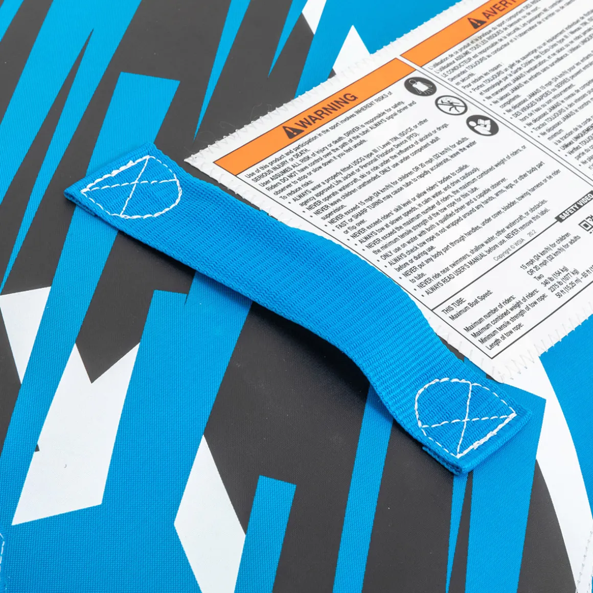 Innovative safety features keep riders on board no matter what they encounter. Inflatable topside stabilizer fins are a unique addition to this Airhead 2 person tube. 4 deluxe nylon-wrapped handles, each of which features neoprene knuckle guards for a comfortable and convenient grip, keep riders safe.
