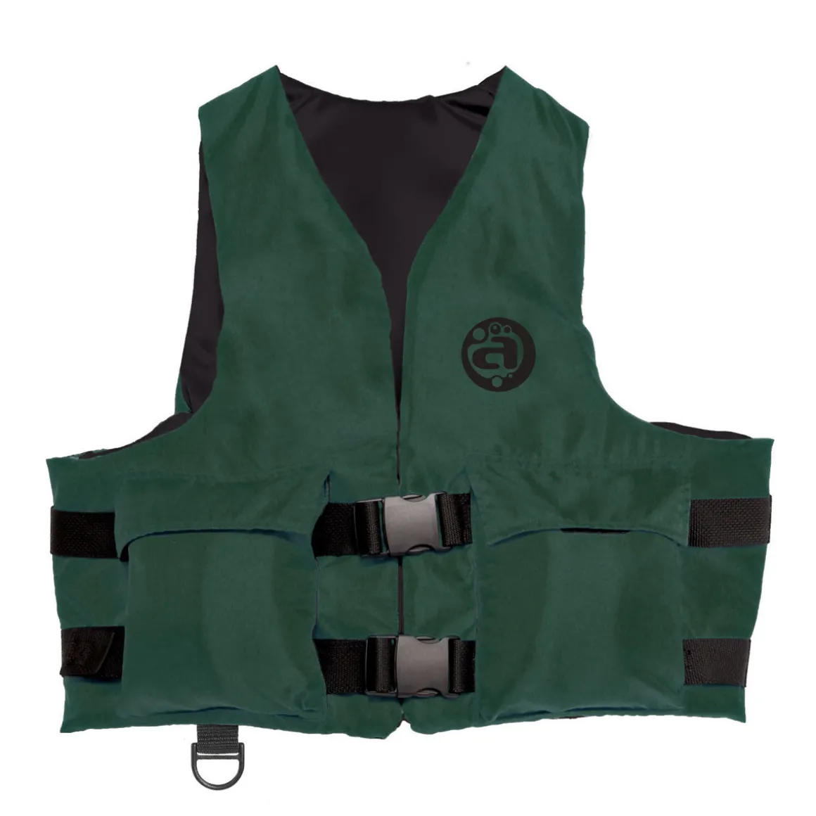 Find two large pockets on the front for stashing away essentials; plus, the handy D-ring makes it easy to attach extras. Opt for hunter green for a subdued, natural look, or choose the youth camo life jacket for under-the-radar paddling.