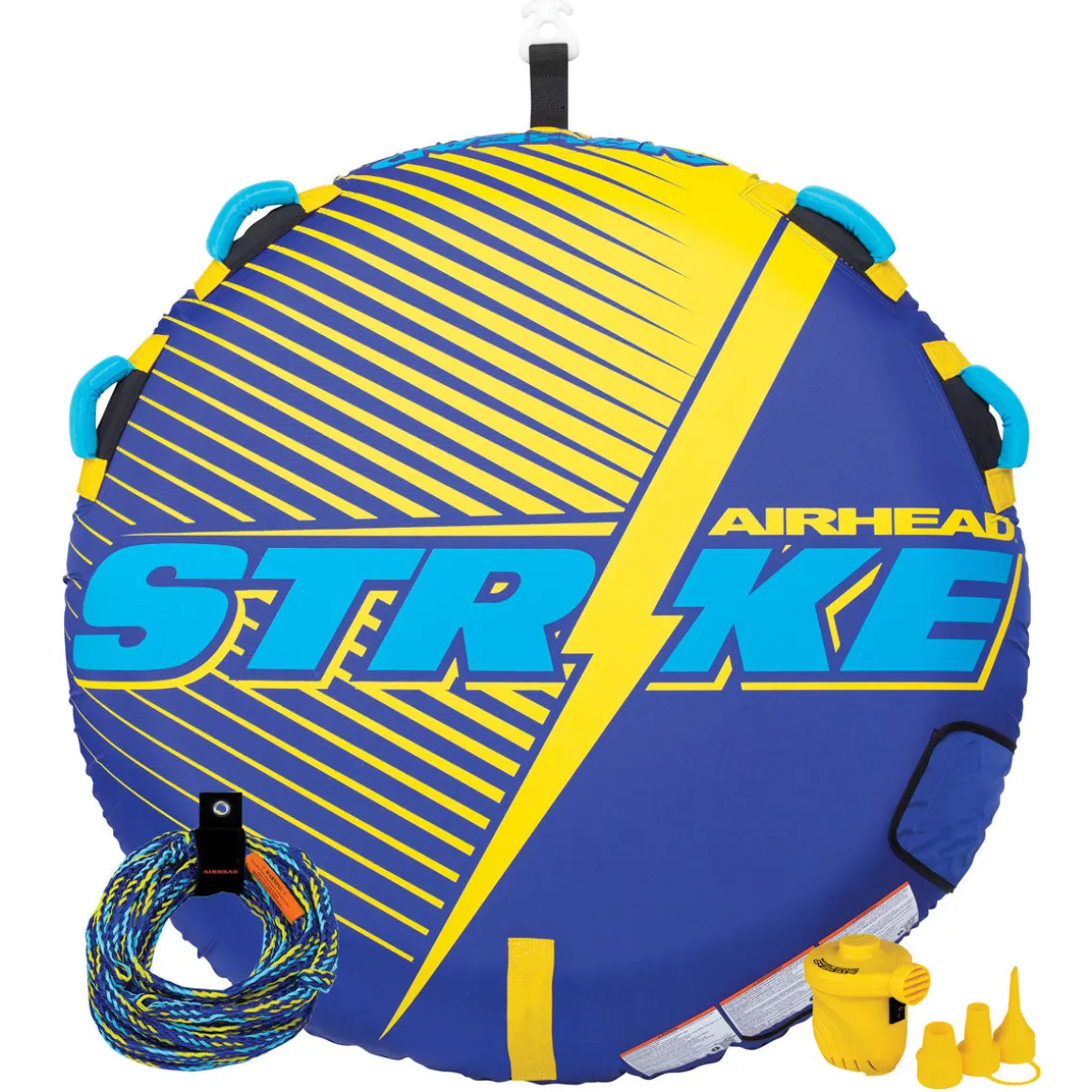 The Airhead Strike Kit comes with a boat inner tube, a 50-foot color-coordinating tow rope, and a 12-volt air pump. Add a boat and a rider, and you’ll have everything you need for an extraordinary day celebrating life on the water.