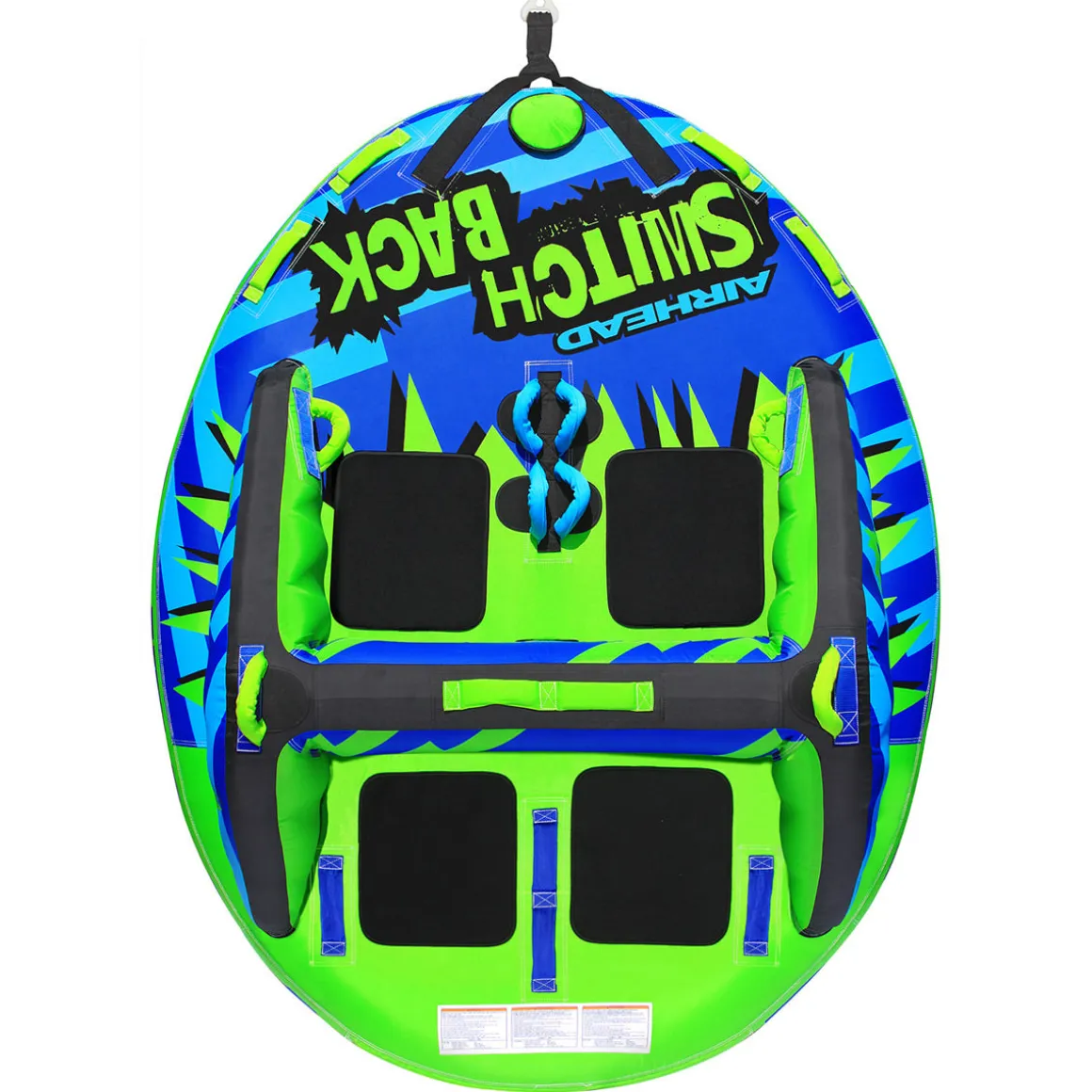 Airhead Switch Back 4 is a 4 person towable tube crafted for comfortable, carefree days. This 4 person tube for boats differs from other inflatables because it has dual seating options in the same ride.
