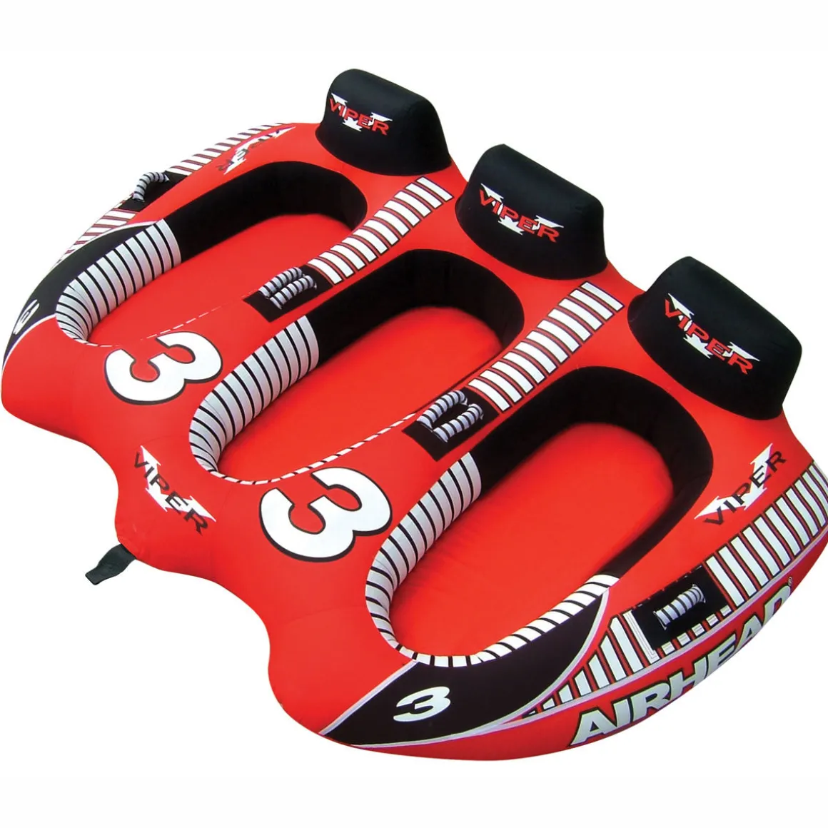 Viper 3 is a 3 person towable tube that strikes the perfect balance between speed and safety. This 3 person towable tube is shaped like a boat, yet moves like a rocket. The cockpit design provides a feeling and safety and security for riders—especially young ones.