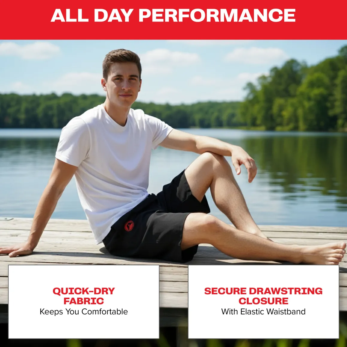 These durable Board Shorts are designed for action in and out of the water. They have a Polyester woven fabric with a soft finish. The shorts feature high-performance quick-dry and water-repellent properties. Closure is secured with a polyester drawstring and elastic waistband. Functionality is enhanced by 100% polyester mesh side pockets and a back flap pocket.