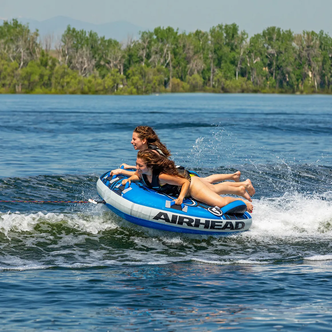 Innovative safety features keep riders on board no matter what they encounter. Inflatable topside stabilizer fins are a unique addition to this Airhead 2 person tube. 4 deluxe nylon-wrapped handles, each of which features neoprene knuckle guards for a comfortable and convenient grip, keep riders safe.