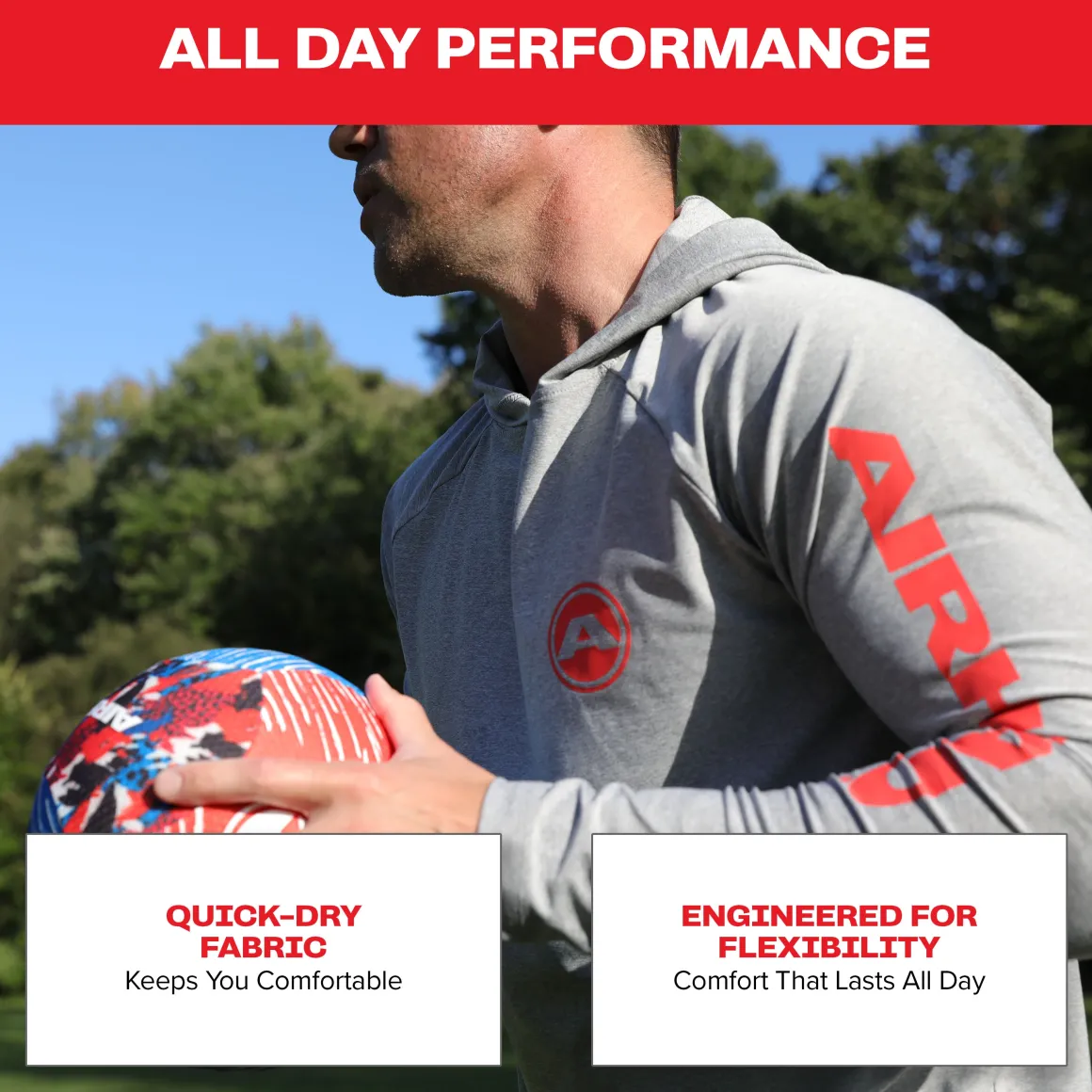 Quick-dry, breathable construction for all-day comfort.