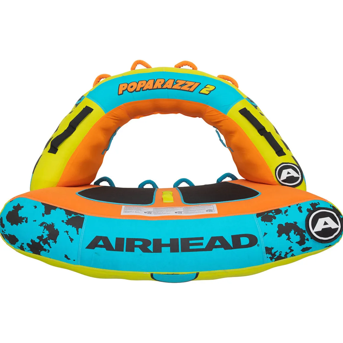 This Airhead Poparazzi 2 is a 2 person towable tube that wants to be seen. With a roof-like circle shape and a rocker bottom, taking this boat towable out on the lake is guaranteed to turn heads.
