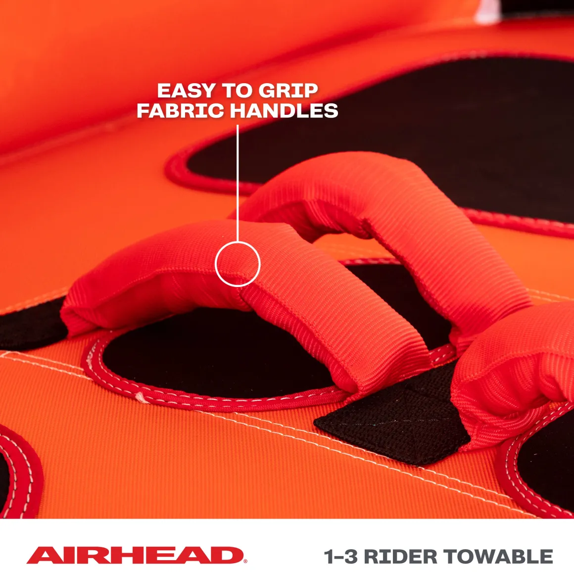 Airhead Super Mable is a 3 person towable tube that adds even more to the design we all know and adore. Discover all the classic features that Airhead tube lovers expect from the Big Mable—including a supportive backrest, top-notch safety features, foam seating pads, and dual tow points. This chariot-style towable tube holds up to three riders, making it perfect for family outings.