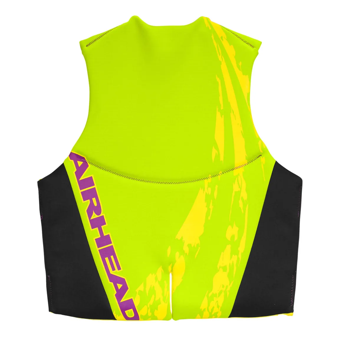 The durable zippered closure in the front offers a traditional vest design that goes with everything. Quick-release buckles make this life jacket easy to remove in an instant, and the tagless design offers ultimate comfort. The Airhead Swoosh Neolite swimming life vest features a modern design and is available in blue, red, or green.